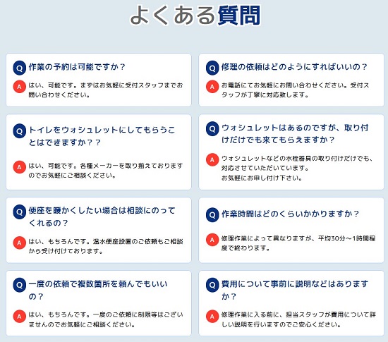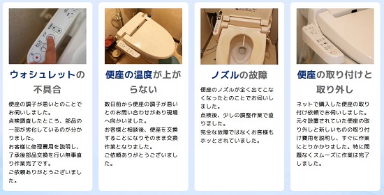 川口市で対応可能な温水便座、ウォシュレットの修理サービスとなります。その他のトラブルやご相談に関しましてはお気軽に受付窓口までお問い合わせください。
